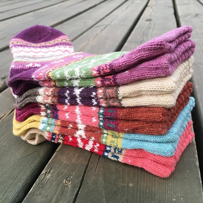 - SIZE & CARE : 5 pack Womens wool socks come is a standard US SIZE that fit shoe sizes from US 5 – 9, so everyone can enjoy these colorful socks. Please do not iron them and suggesting wash them by hand.