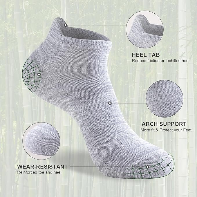 - High Quality Materials: Niorasen men’s ankle socks feature 90% viscose for bamboo for breathability and comfort, 7% Spandex for elasticity, and 3% Elastane for a snug, supportive fit. These materials make your feet cool, dry and comfortable during any activity.