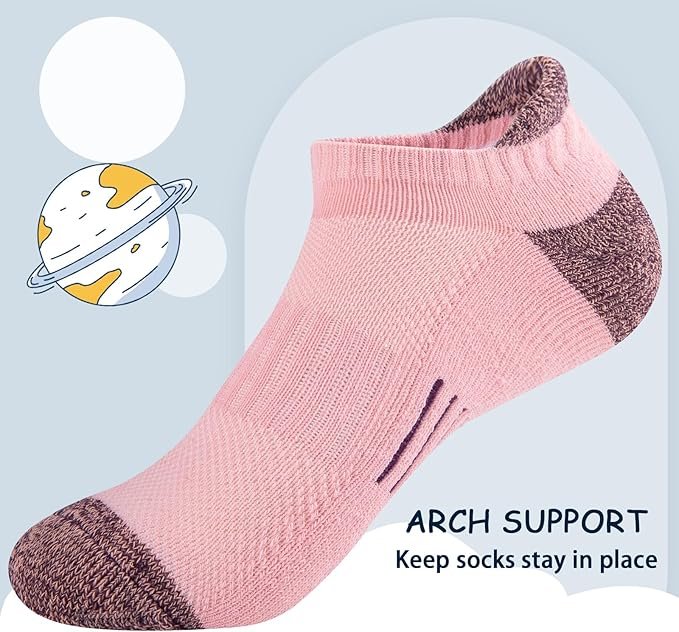 - ARCH SUPPORT: Girls socks with arch band provide the perfect amount of tension and stretch to make girls athletic socks fit your child’s feet perfectly, but not too tight, increasing comfort and reducing foot fatigue