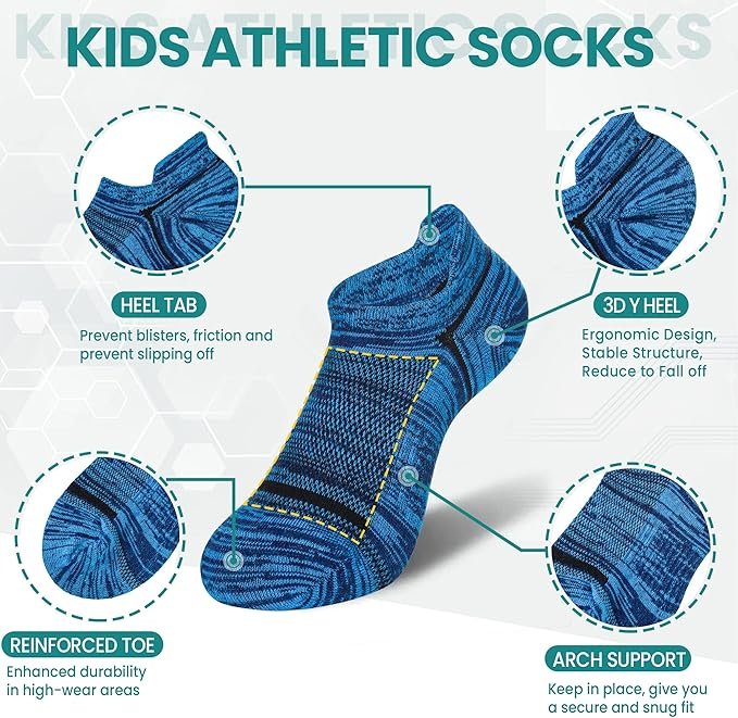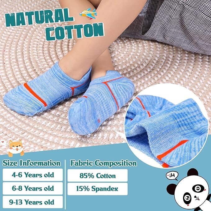 - 【SIZE & PACKAGING】Each package of sport socks contain 6 pairs children socks, provide enough socks for children who often lose their socks. Perfect for everyday wear, Your little kids boy will love these no show socks. Children’ cotton sport socks are suitable for children from 4 to 13 years old.