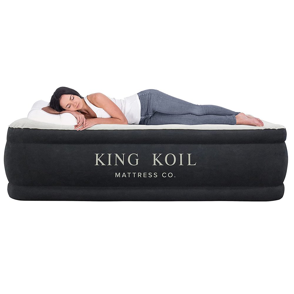 - Easy to use plug in internal pump allows fast & easy inflation / deflation. The King Koil mattress reaches full inflation in under 2 minutes. The King Koil air mattress is designed for in-home use and is perfect for overnight guests, friends or relatives, and camping trips. Remember, although it holds air extremely well, you can always click the pump on for a few seconds to inflate or deflate to your desired comfort level!
