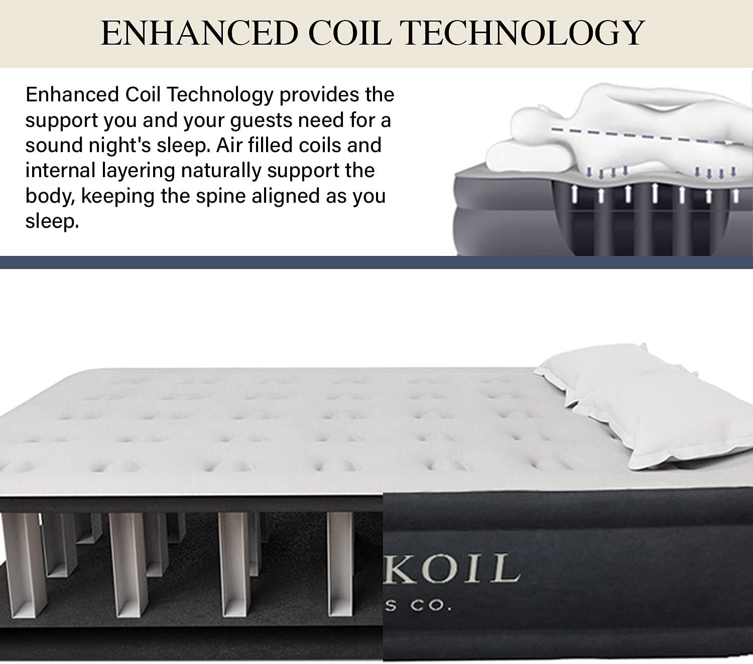 - King Koil is LUXURY! Factory 1-year warranty provided by the manufacturer included in your purchase! – King Koil enhanced queen airbed technology with a – soft flocking layer and a built-in pillow. Built for maximum comfort – we stand behind our quality & warranty! warranty details in packaging and with airbed purchase.