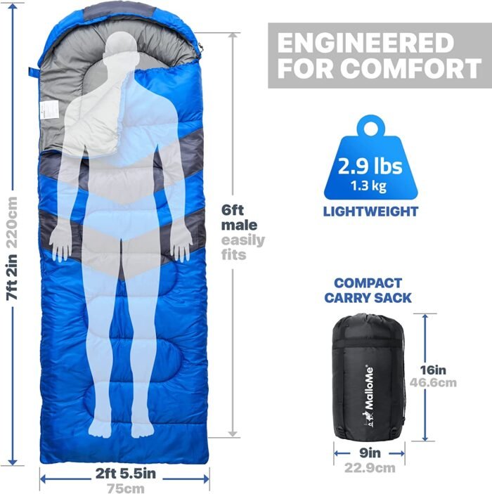 - ✅ CAMP IN COMFORT FOR ALL AGES – Bring the comfort of your own bed to the great outdoors. Our camping sleeping bags are engineered to guarantee a good night’s sleep after a hard day of activities. No matter how tough the terrain or long the day, sleep well with MalloMe. And with vibrant colors loved by both boys and girls, they’re great for kids too!