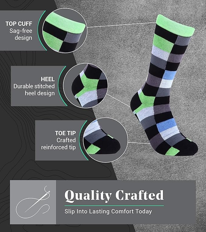 - HIGHLY CLASSY – Our colorful socks for men are fashionable and colorful to match up with all your favorite clothes for every day.