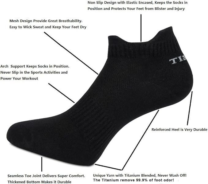 - TREAT ANTHLETES FOOT- Refund if no effect! This sock features titanium in the yarn. It can release ion which can remove foot odor.Titanium has better performance than silver.