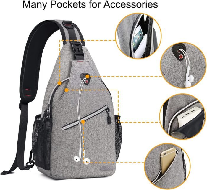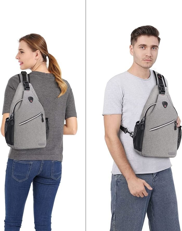 - Made of durable and soft polyester material with gliding smoothly zippers and strap clip, allows you convenient access to your stuff. 1 year warranty on every sling bag.