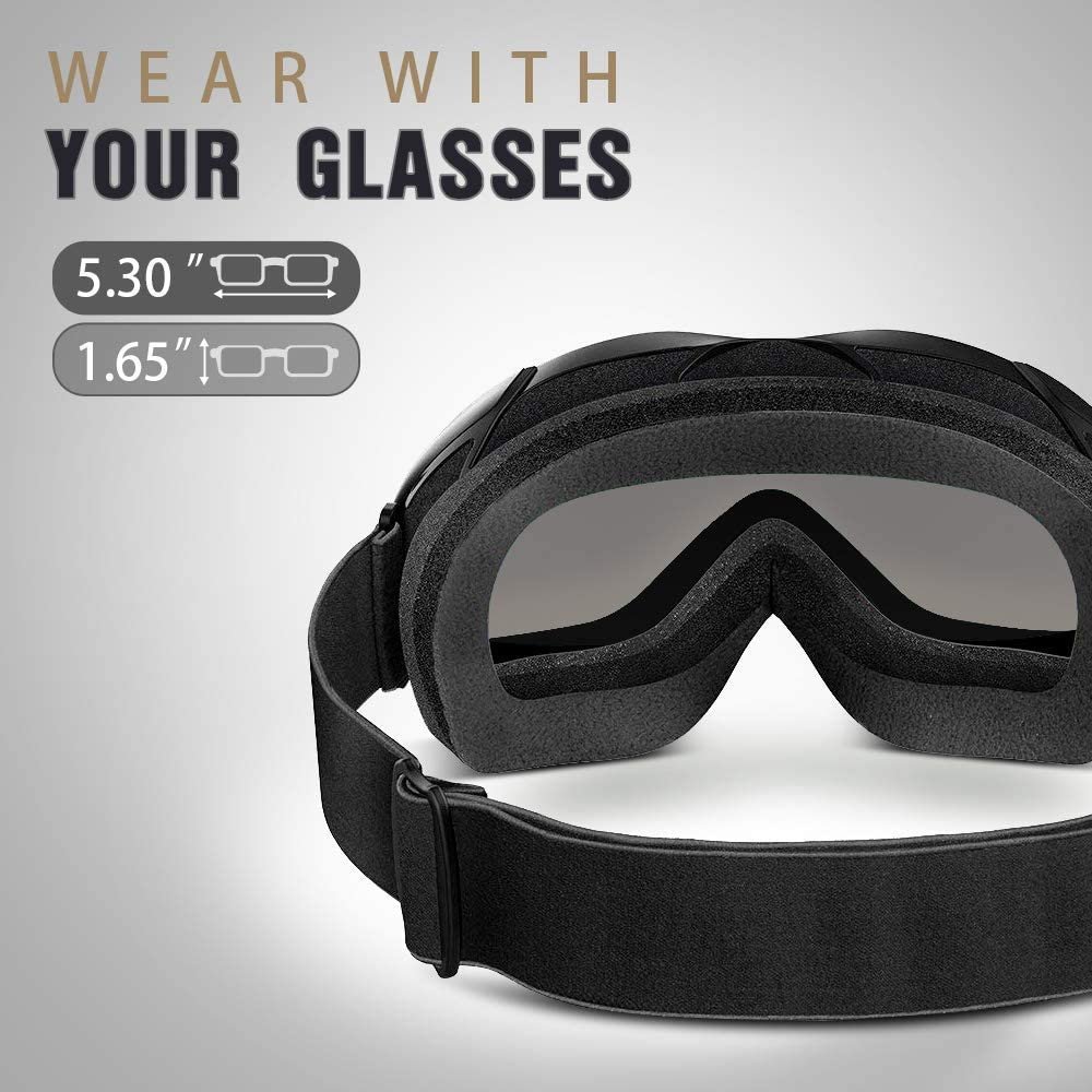 - OTG (OVER-THE-GLASSES) DESIGN – Ski goggles that fits over glasses. Suitable for both ADULTS AND YOUTH.