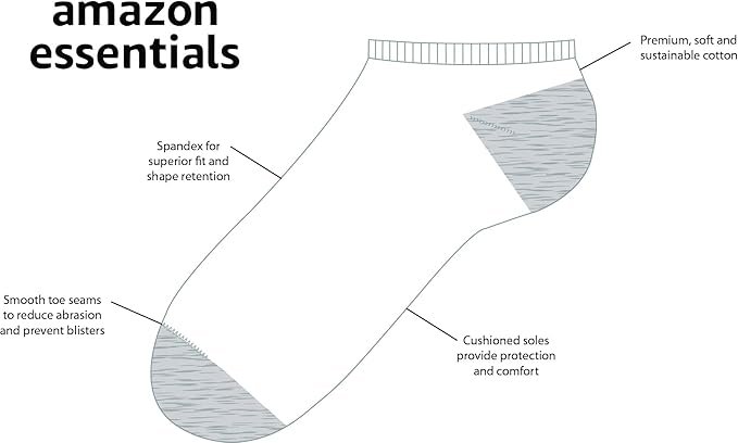 - MATERIAL: Amazon Essentials socks are made from high-quality and durable materials. These socks are a cotton-poly blend with elastane for superior fit and shape retention
