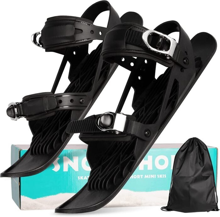 - ????Adjustable Universal Size: Mini skis can be directly fixed on your ski boots, snowboard boots, or almost any type of winter shoes. Due to multiple adjustable bindings, we recommend wearing snowshoes of size US 6-13/ EU35-47.