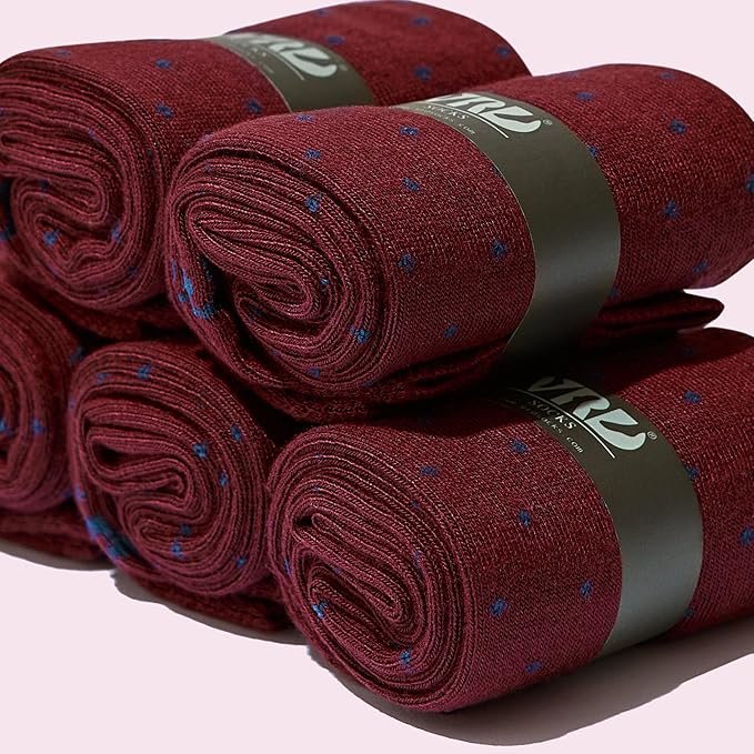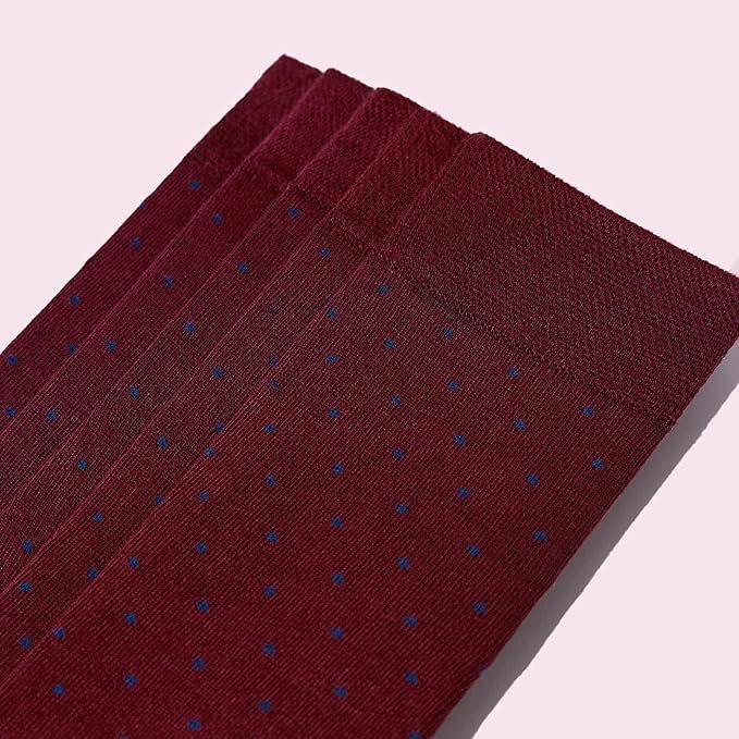 - 5 Pack Dotted Design Includes dotted, crew socks in Burgundy for stylish everyday versatility.