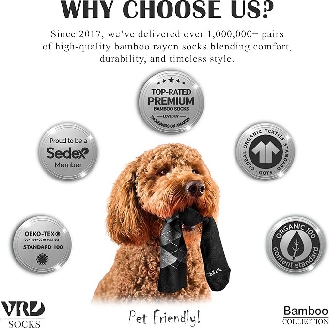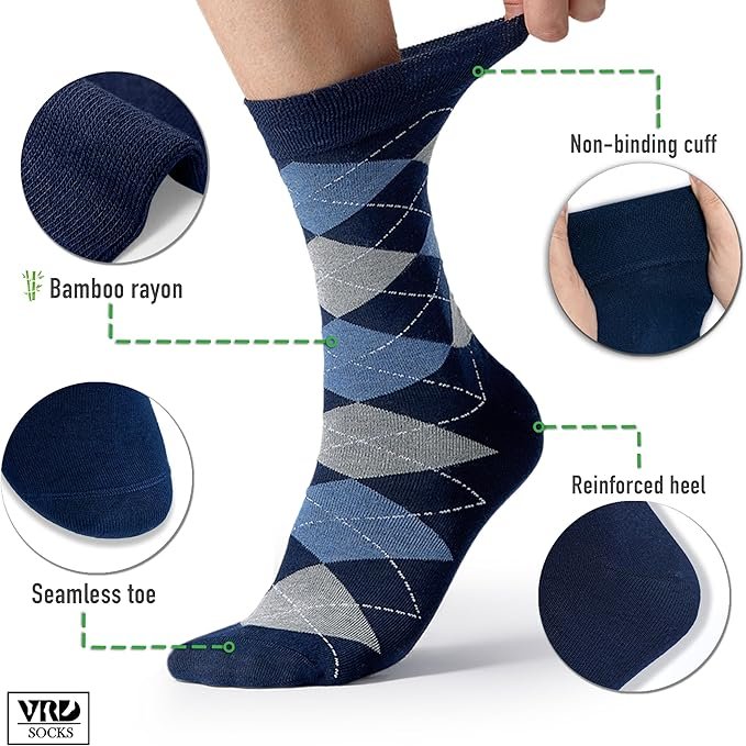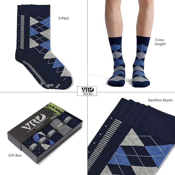 VRD Men’s Dress Socks Bamboo Rayon 5-Pack Crew Socks