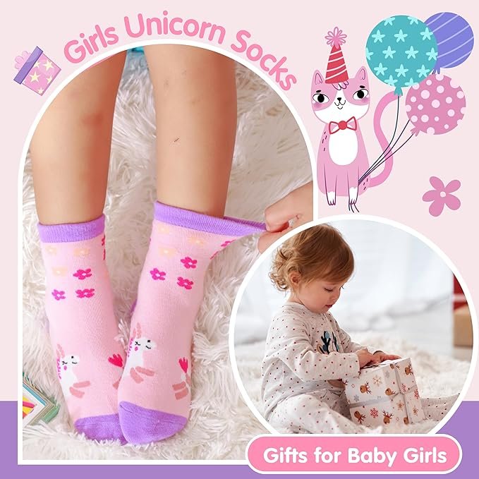 - 【5 Sizes】There are 5 sizes of these non slip socks to choose,6-12M ,1-3 Y,3-5 Y,5-8 Y,9-14Y.Kids of these ages can enjoy this cute funny socks all the seasons.The cartoon socks with grips are perfect gifts for active girls , infants , toddlers and kids.