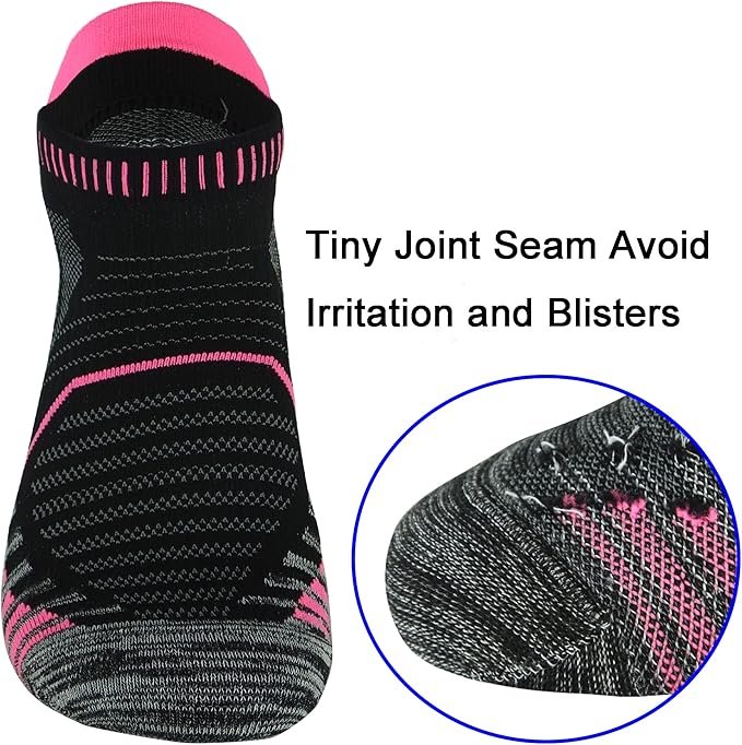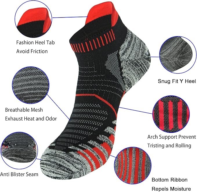 - The athletic ankle socks provide 360 degree protection with the moderate compression(avoid twisting and sliding) and back heel tab(prevent you from friction with shoe’s back-counter).