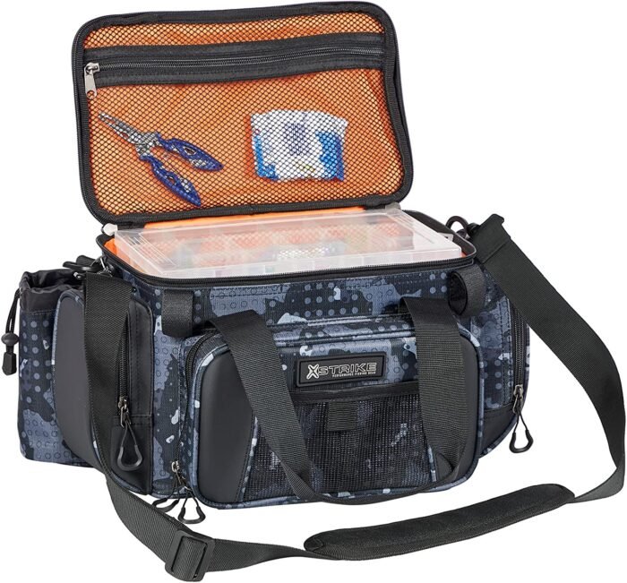 - GOOD MATERIAL & WATER RESISTANT – X Strike fishing bag is made of high density 420D polyester fabric. It is more durable than other fabrics, better long-term performance and reliability. The hydrophobicity of the polyester fabric keeps your fishing bag dry and Internal PVC layer provides double protection to ensure your tackle safe from damage. The durable 420D PE PVC coated bottom repels repels standing water and the tacky rubber feet grip any surface.
